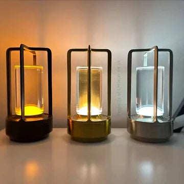 Bring elegant, mood-setting illumination anywhere with the AuraBeam™ Table Lamp, a modern portable lantern designed for both indoor ambiance and outdoor sophistication. Sleek, cordless, and beautifully crafted, it delivers warm, luxurious lighting to restaurants, patios, bedrooms, and cozy home spaces.